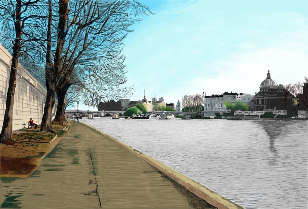 フランスパンに野菜とハムを挟んだサンドイッチをほうばりながらセーヌ川のほとりを歩いてみました。パリを感じますね。42年前の風景です。